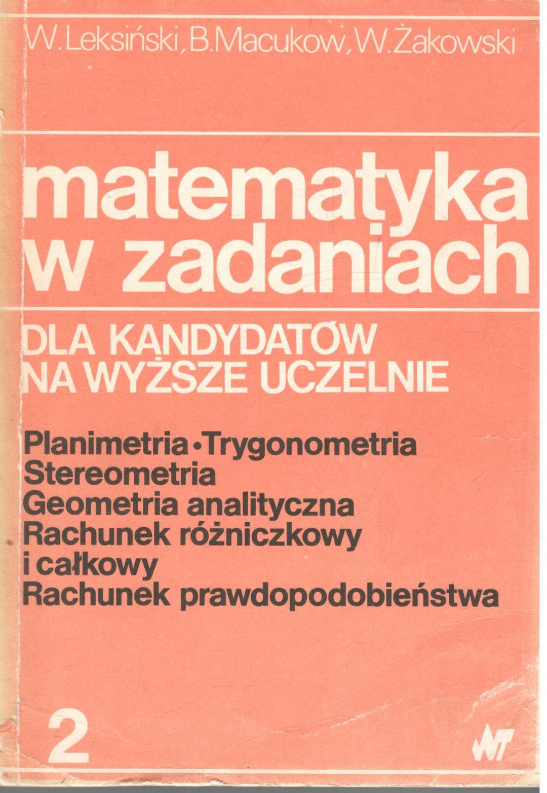 | Inne tytuły: | Matematyka w zadaniach 2 [Planimetria, trygonometria, stereometria, geometria analityczna, rachunek różniczkowy i całkowy, rachunek prawdopodobieństwa] |