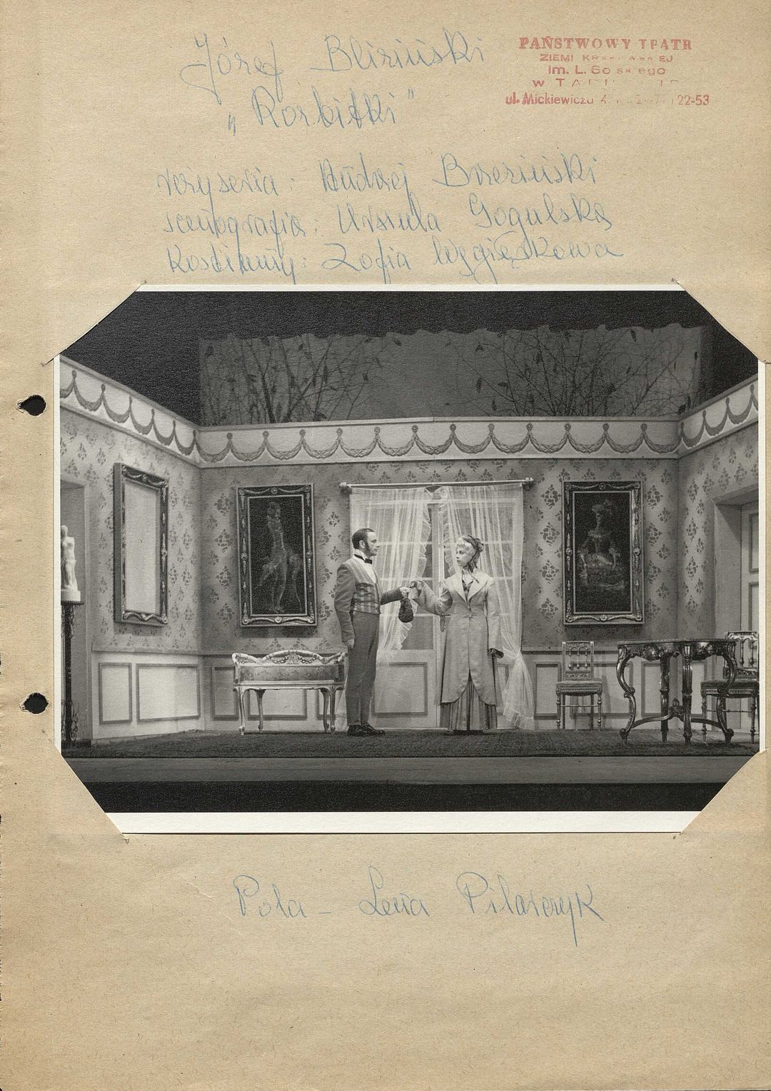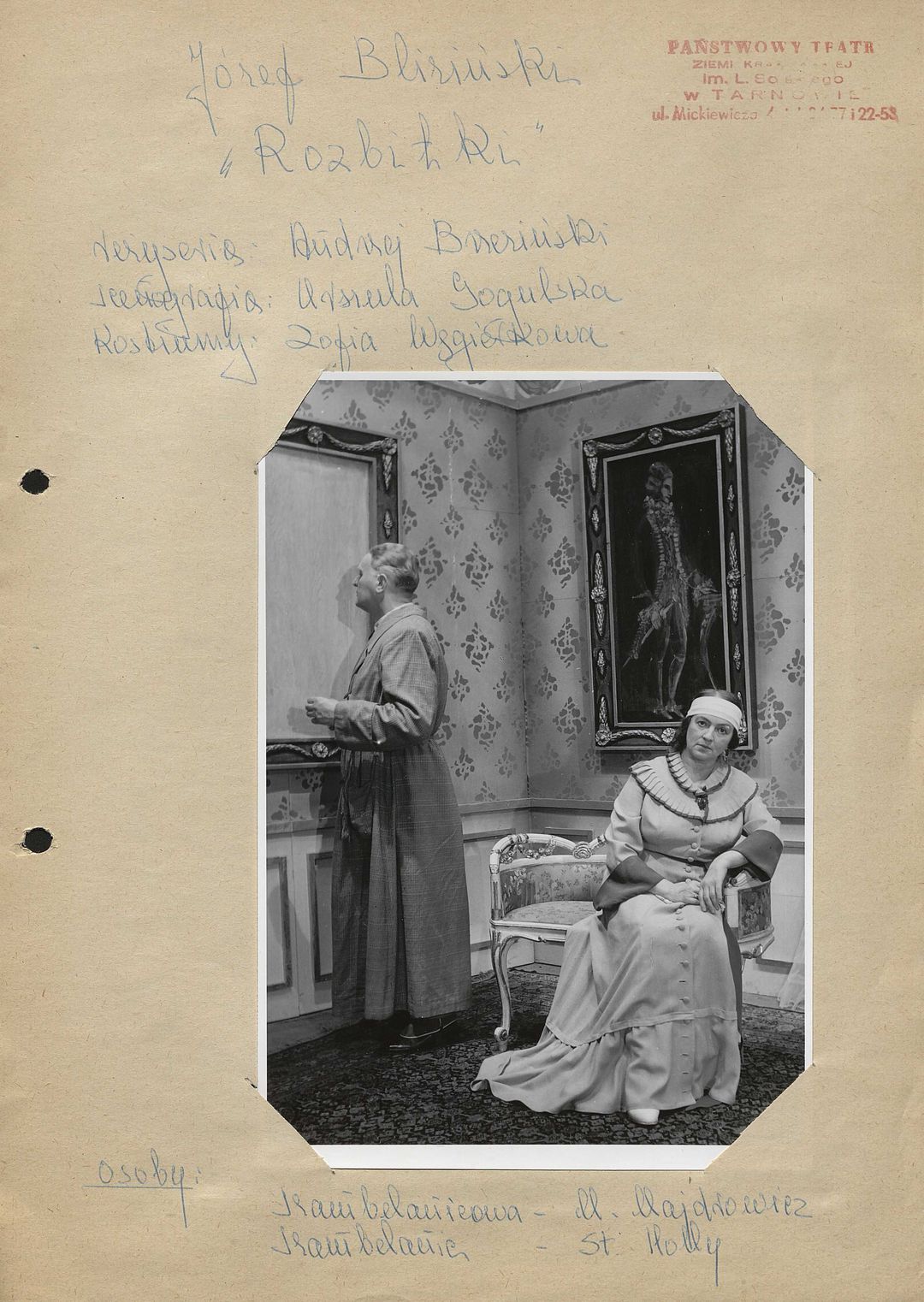 [Maria Majdrowicz jako Szambelanicowa i Stanisław Holly jako Szambelanic w spektaklu "Rozbitki" Józefa Blizińskiego]