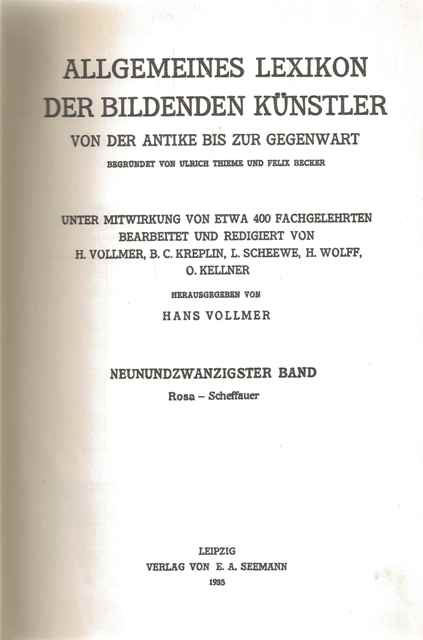 | Redakcja: | Hans Vollmer (1871-1941) Felix Becker (1864-1928) Ulrich Thieme (1865-1922) B. C. Kreplin L. Scheewe H. Wolff O. Kellner |