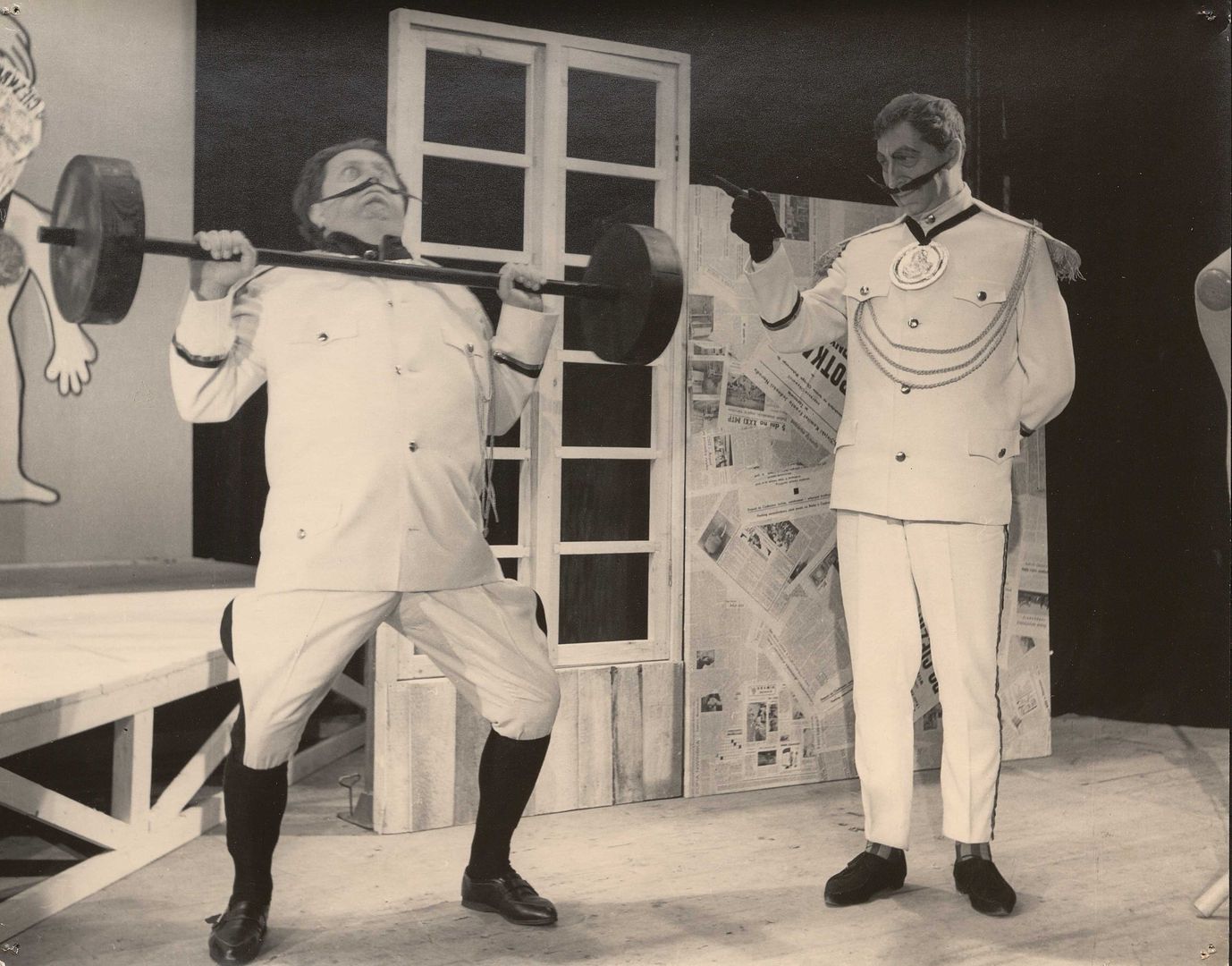 [Eugeniusz Wałaszek jako Sierżant Policji i Marian Słojkowski jako Naczelnik Policji w spektaklu "Policja" Sławomira Mrożka]