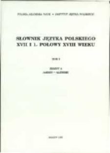 | Inne tytuły: | Słownik języka polskiego XVII i 1. połowy XVIII wieku T. 1 z. 2, |