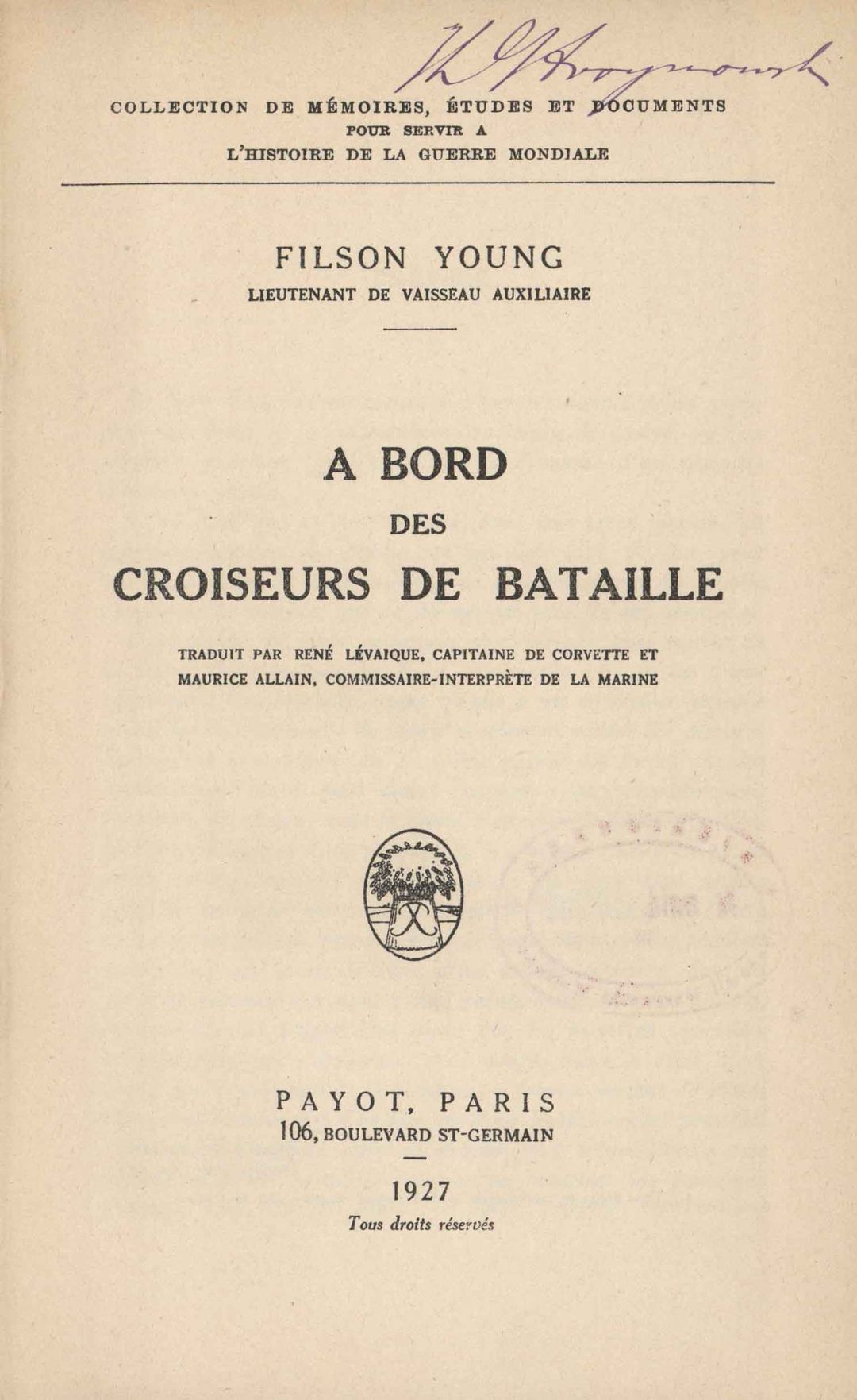Collection de Mémoires, Études et Documents pour Servir à l'Histoire de la Guerre Mondiale
