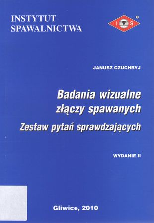 | Inne tytuły: | zestaw pytań sprawdzających przegląd metod Badania wizualne złączy spawanych Badania złączy spawanych według norm europejskich systematyka i przyczyny powstawania niezgodności spawalniczych |