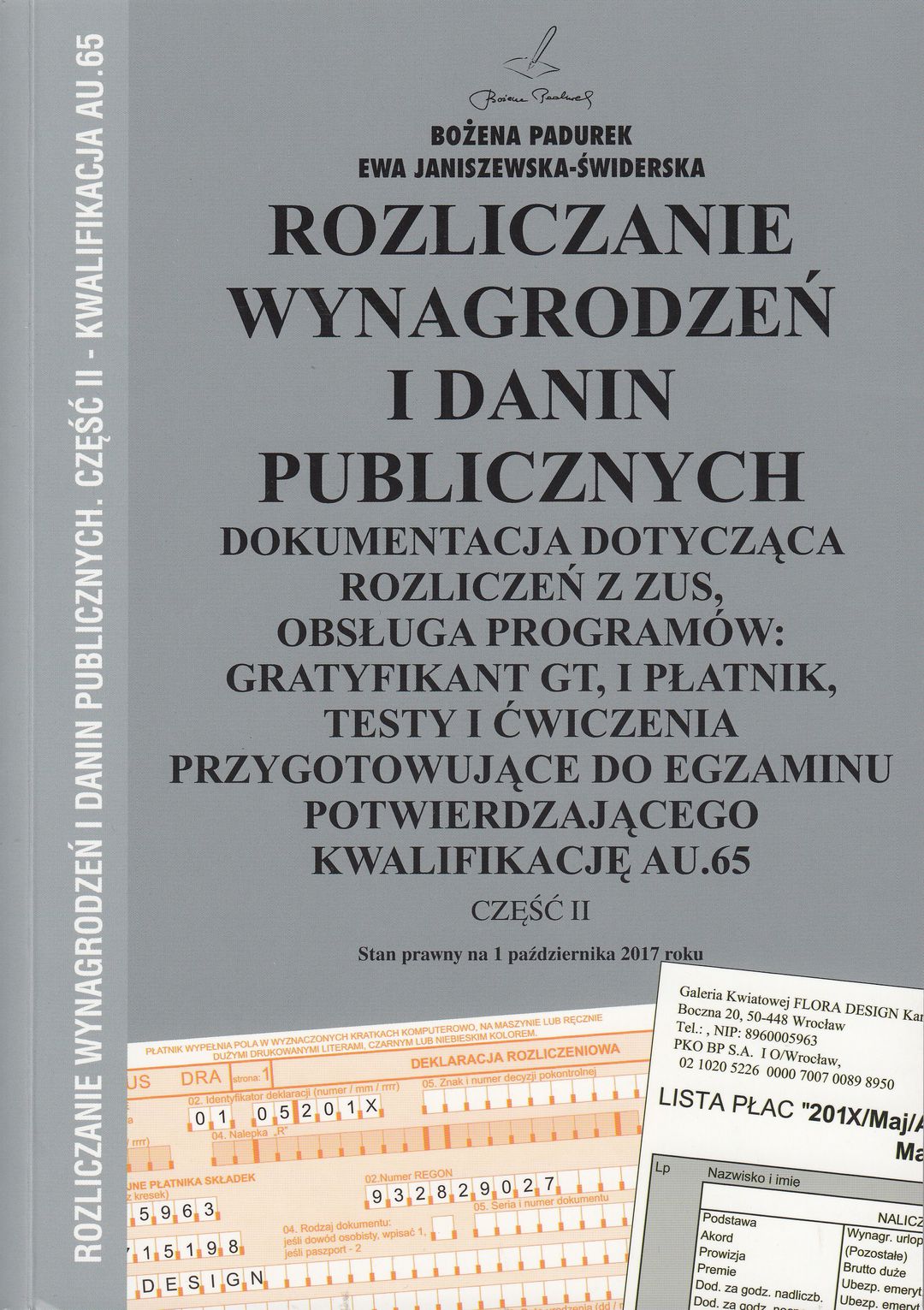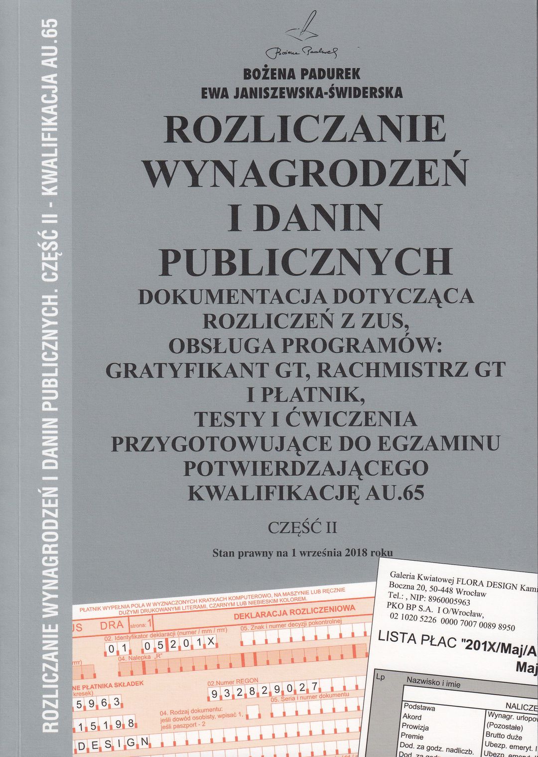 dokumentacja dotycząca rozliczeń z ZUS, obsługa programów: Gratyfikant GT i Płatnik, testy i ćwiczenia przygotowujące do egzaminu potwierdzającego kwalifikację AU.65