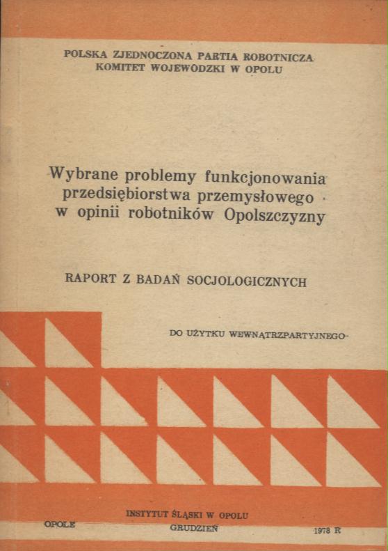 Wybrane problemy funkcjonowania przedsiębiorstwa przemysłowego w opinii robotników Opolszczyzny: