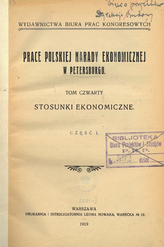 | Inne tytuły: | Prace Polskiej Narady Ekonomicznej w Petersburgu T.4 cz.1. |