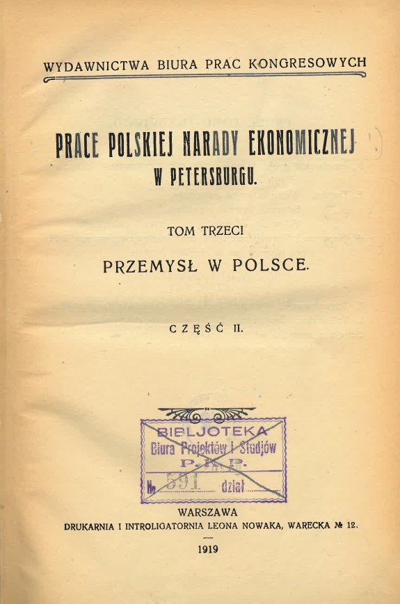 | Inne tytuły: | Prace Polskiej Narady Ekonomicznej w Petersburgu T.3 cz.2. |
