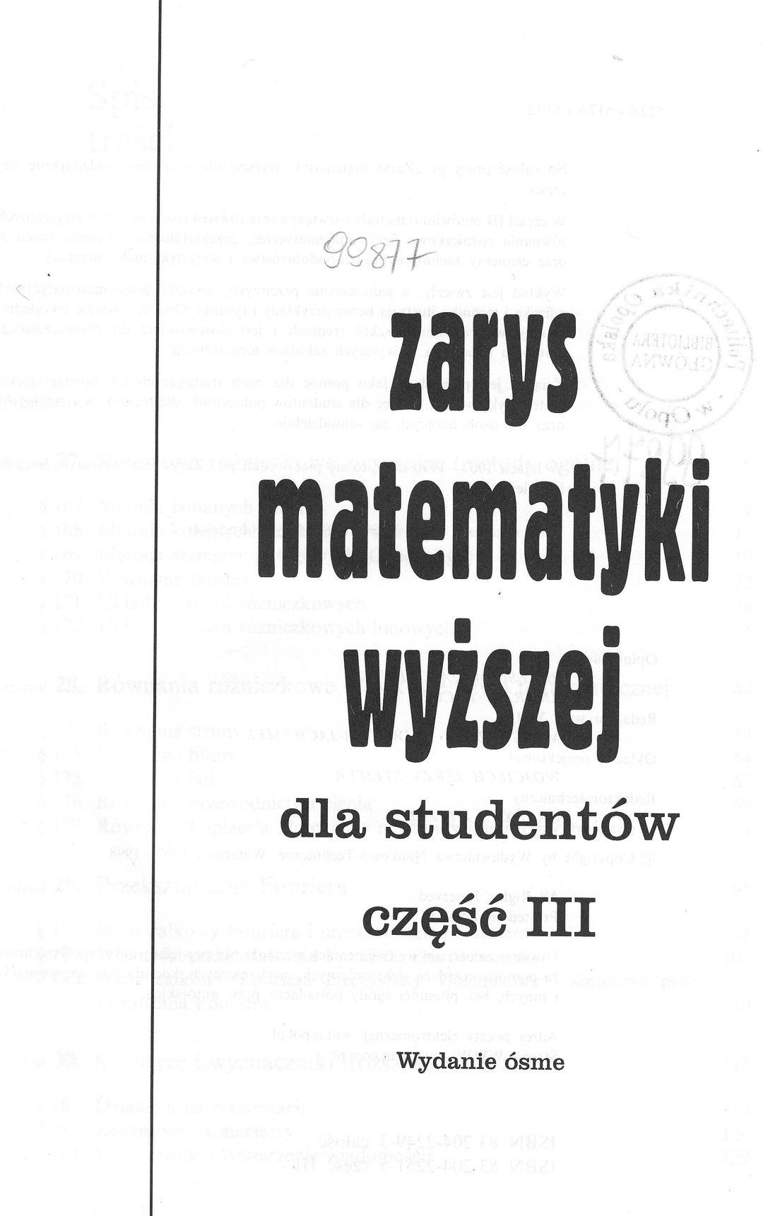| Inne tytuły: | Zarys matematyki wyższej dla studentów Cz. 3 |