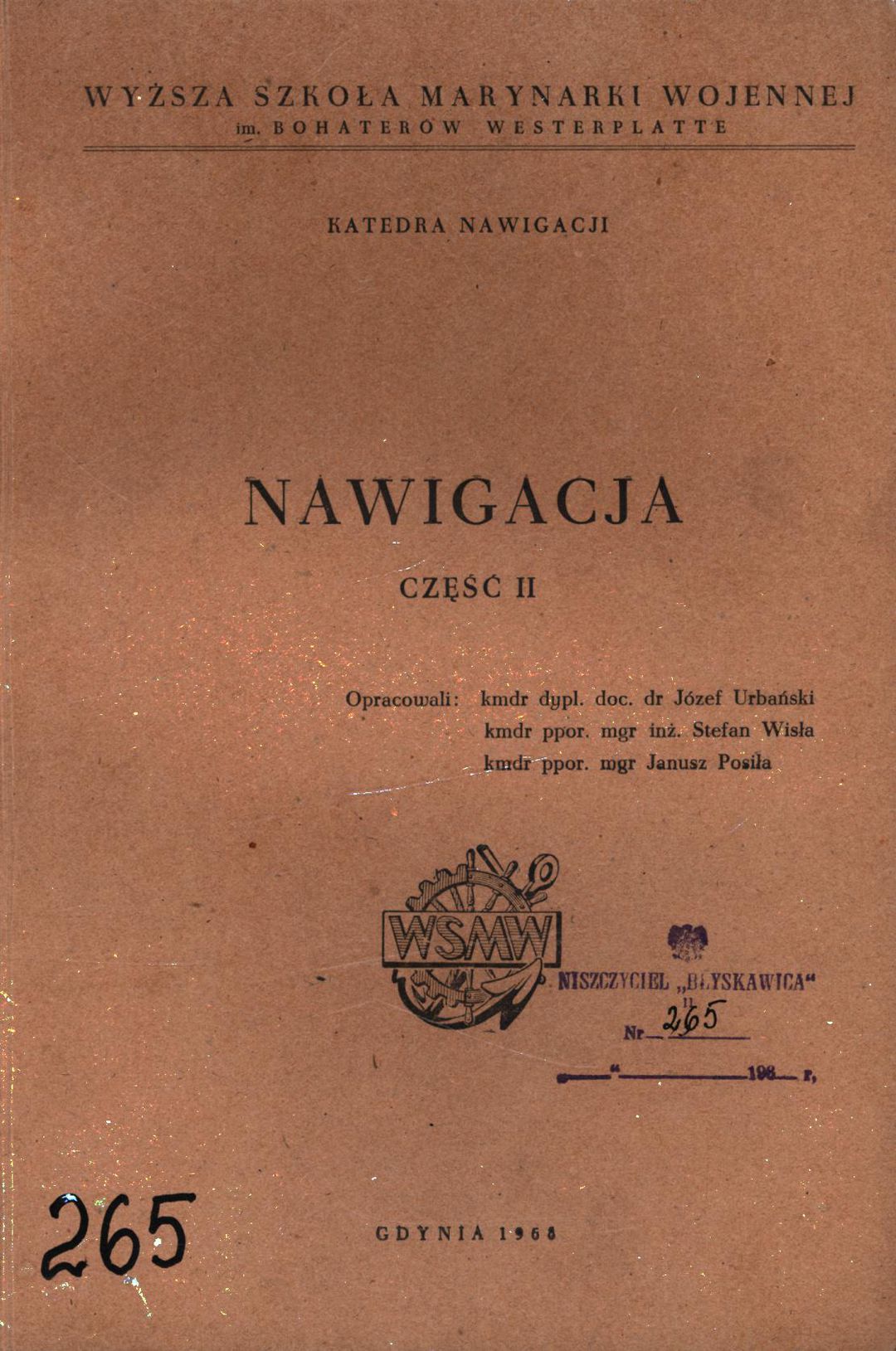 | Wydawca: | Wyższa Szkoła Marynarki Wojennej im. Bohaterów Westerplatte - Katedra Nawigacji (1968) |