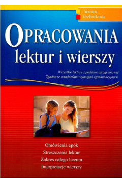 | Inne tytuły: | [wszystkie lektury z podstawy programowej zgodne ze standardami wymagań egzaminacyjnych - omówienia epok, streszczenia lektur, zakres całego liceum, interpretacje wierszy] liceum, [technikum] |