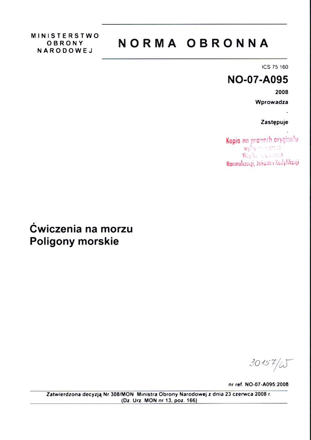 | Inne tytuły: | norma obronna NO-07-A095/2008 poligony morskie |