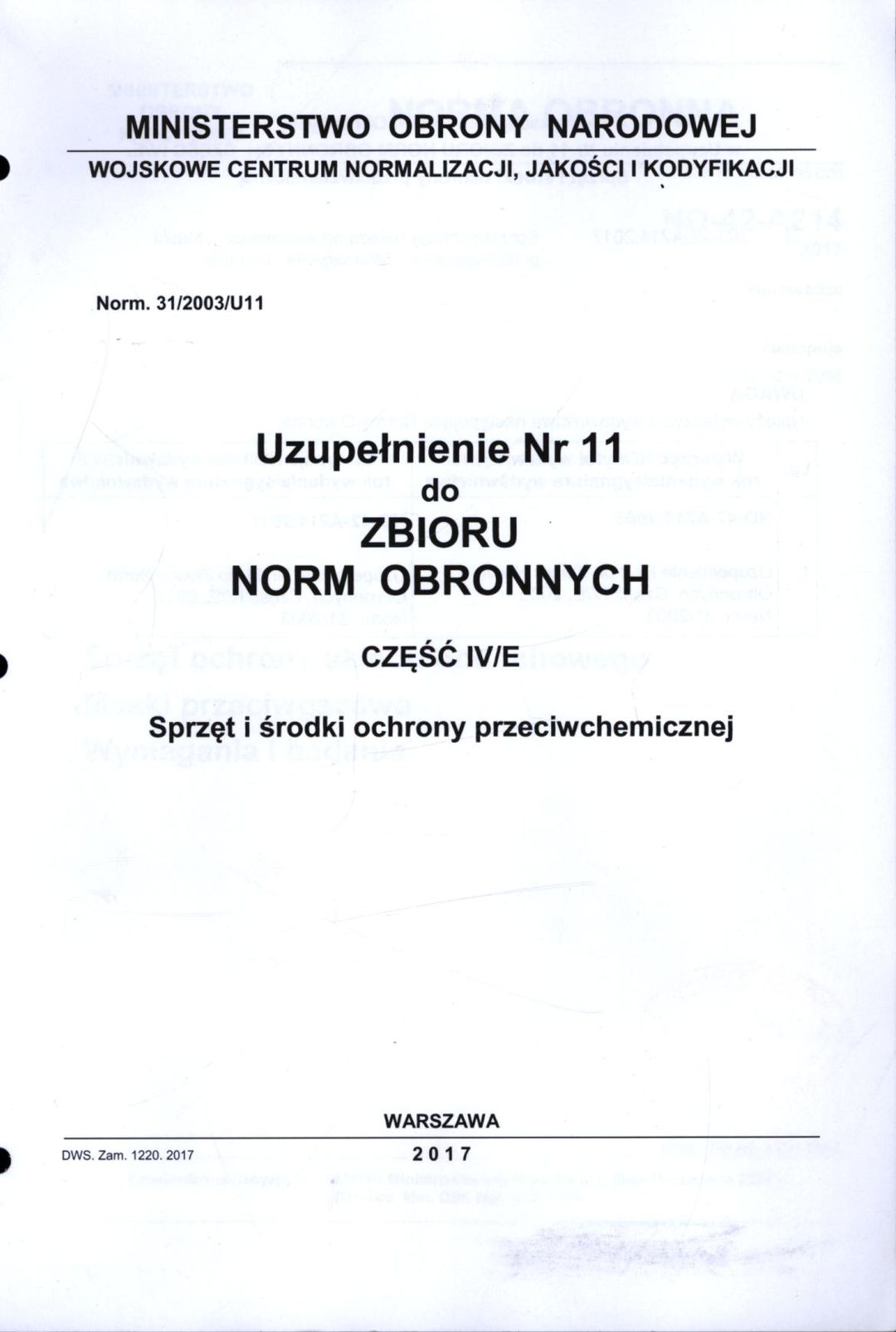 Zbiór norm obronnych: Sprzęt i środki ochrony przeciwchemicznej