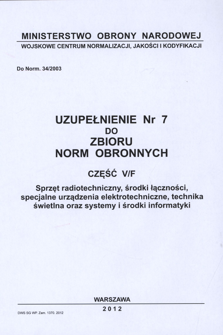 | Instytucja sprawcza: | Ministerstwo Obrony Narodowej. Wojskowe Centrum Normalizacji Jakości i Kodyfikacji |