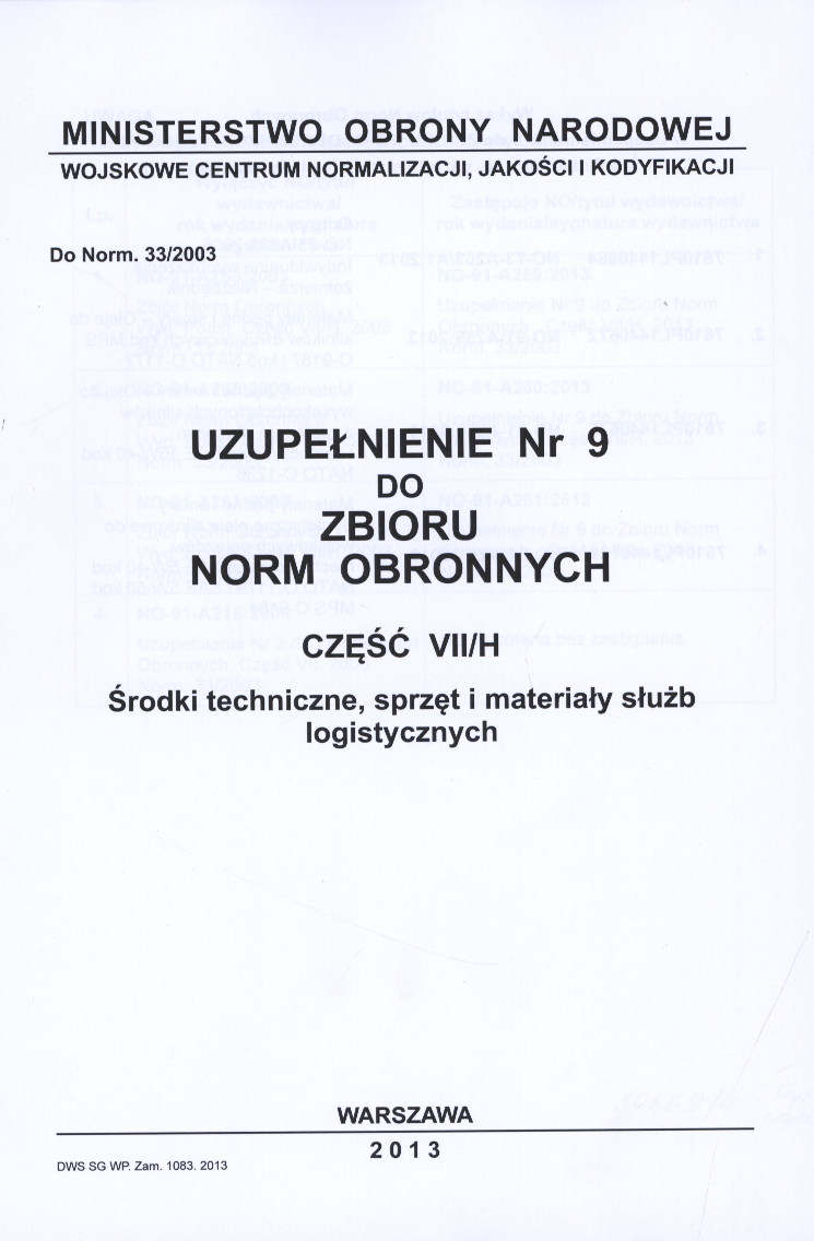 | Instytucja sprawcza: | Ministerstwo Obrony Narodowej. Wojskowe Centrum Normalizacji Jakości i Kodyfikacji |