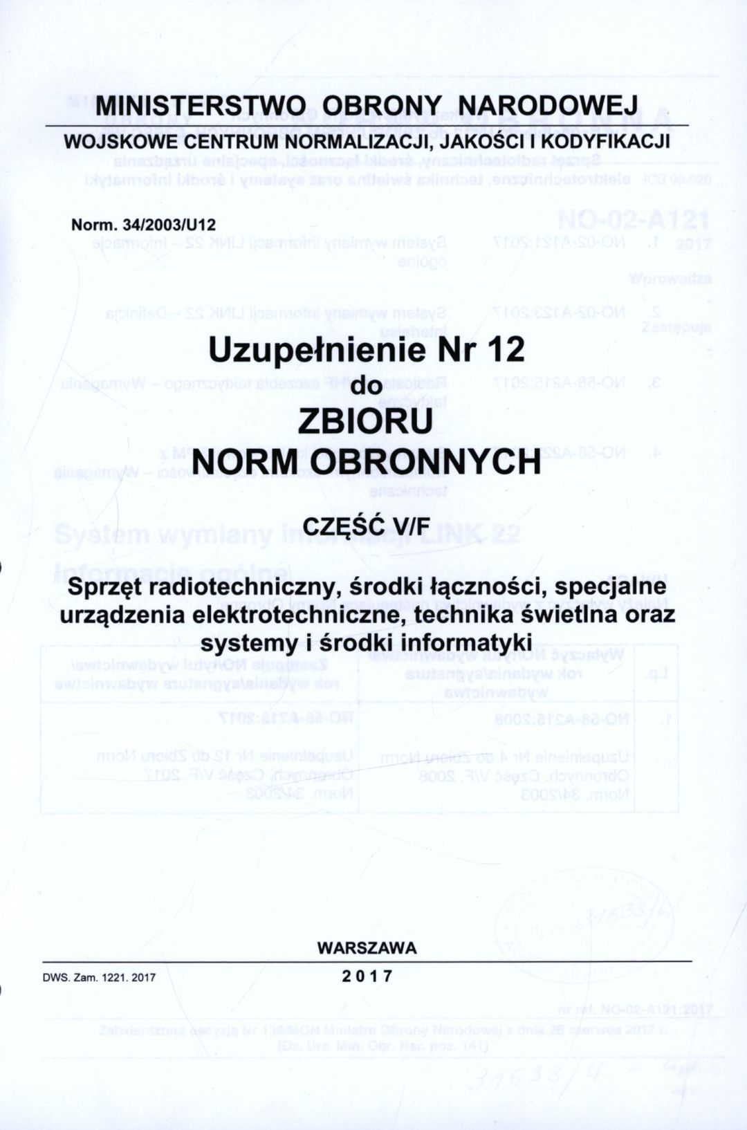 Zbiór norm obronnych: Sprzęt radiotechniczny, środki łączności, specjalne urządzenia elektrotechniczne, technika świetlna oraz systemy i środki informatyki