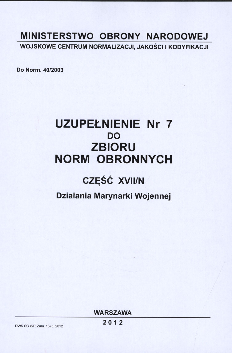 | Inne tytuły: | Zbiór norm obronnych Cz.17/N, |