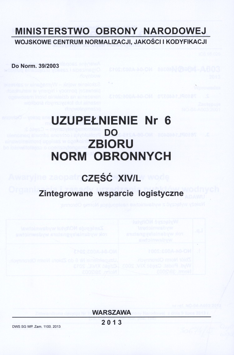 Zbiór norm obronnych: Zintegrowane wsparcie logistyczne