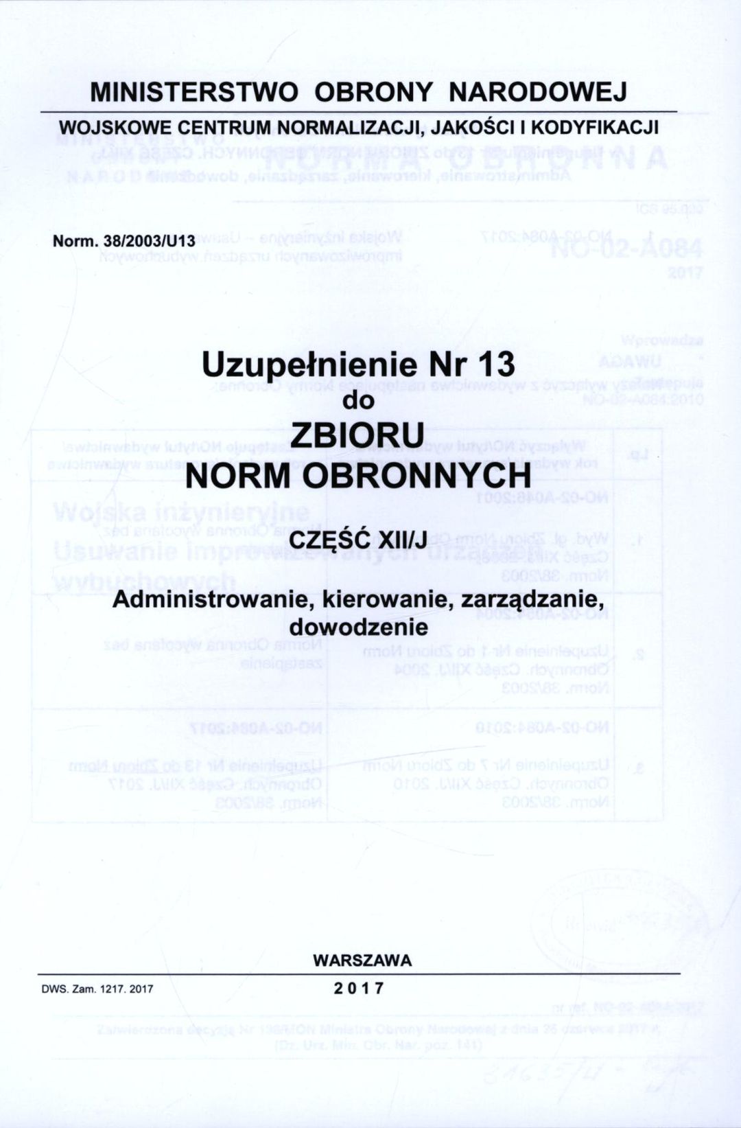 Zbiór norm obronnych: Administrowanie, kierowanie, zarządzanie, dowodzenie
