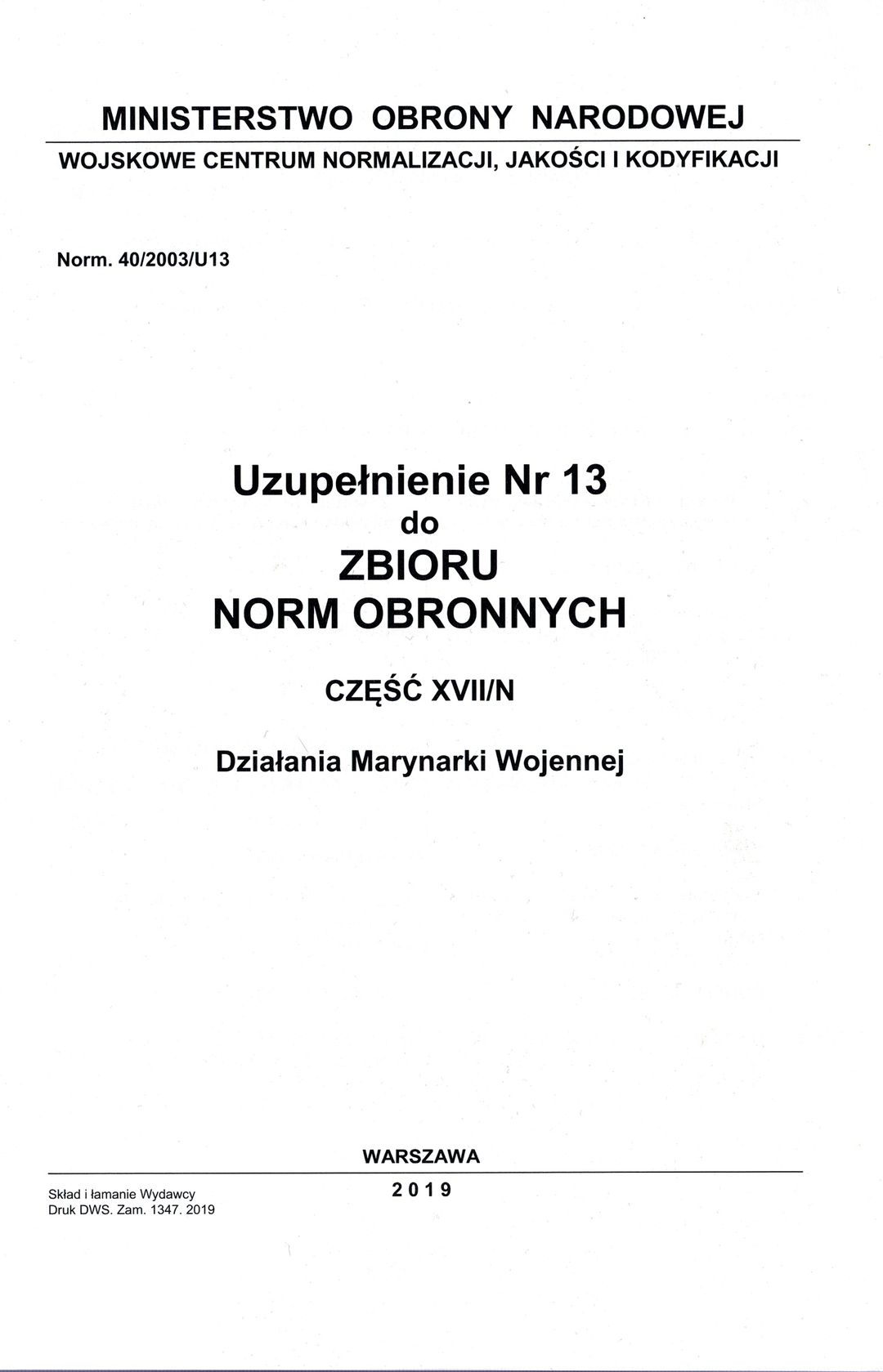 | Instytucja sprawcza: | Ministerstwo Obrony Narodowej. Wojskowe Centrum Normalizacji Jakości i Kodyfikacji |