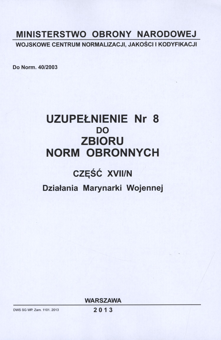 | Inne tytuły: | Zbiór norm obronnych Cz. 17/N, |