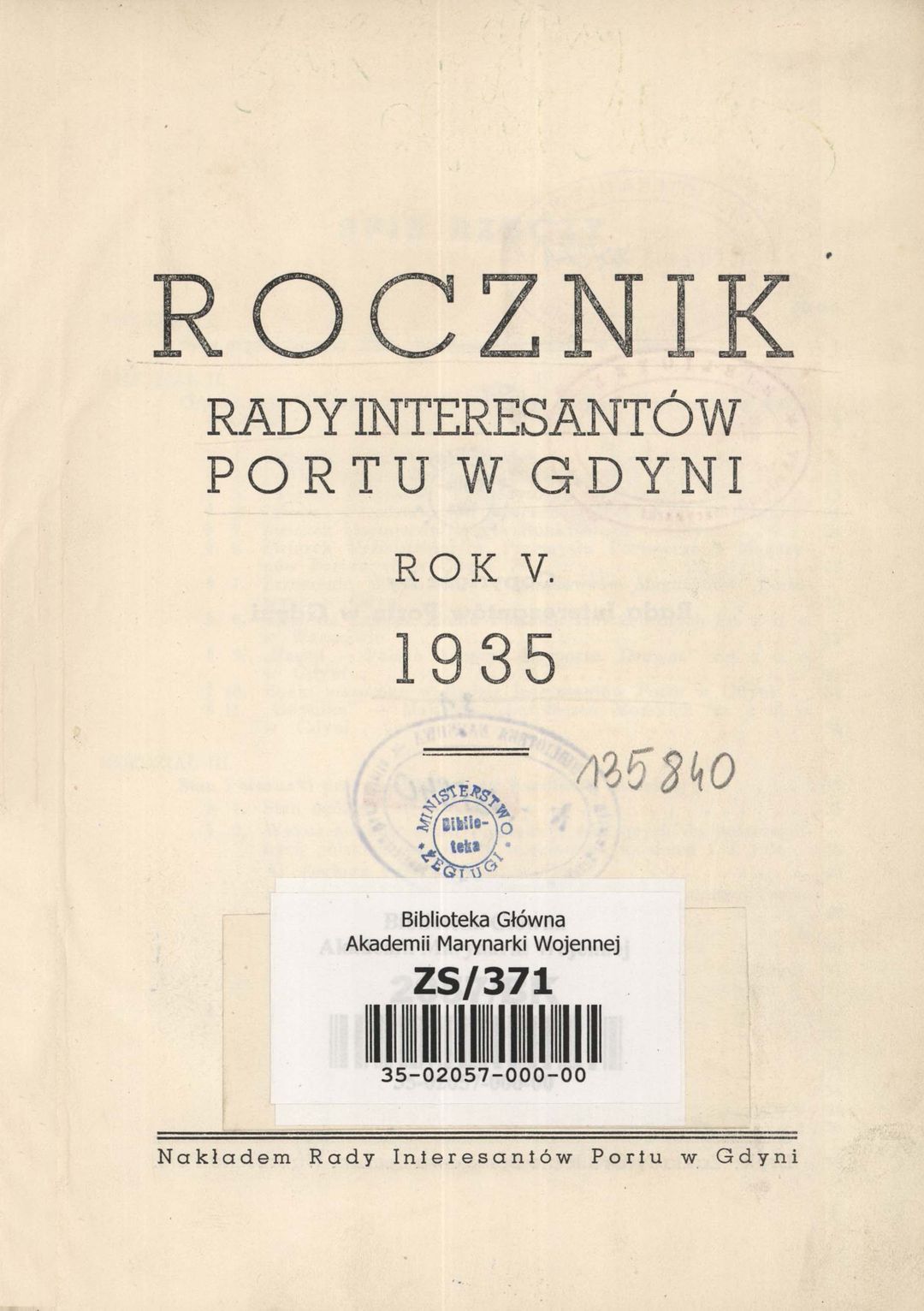 | Inne tytuły: | Rocznik Rady Interesantów Portu w Gdyni Rok 5. |