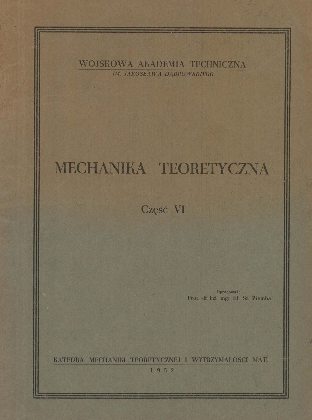 | Instytucja sprawcza: | Wojskowa Akademia Techniczna im. Jarosława Dabrowskiego. Katedra Mechaniki Teoretycznej i Wytrzymałości Materiałów |