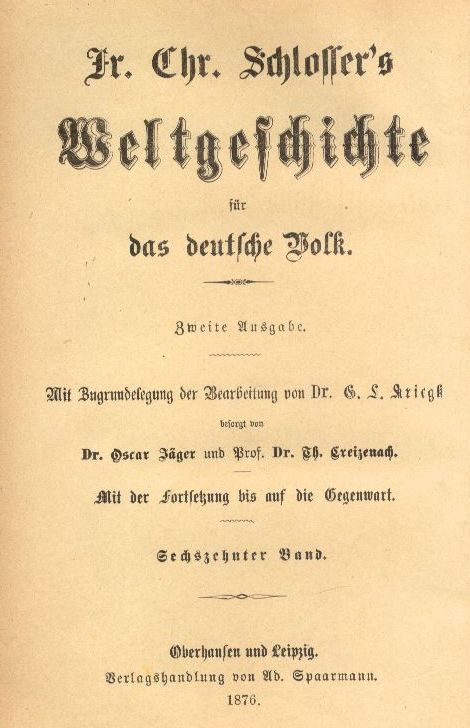 | Inne tytuły: | Fr. Chr. Schlossers Weltgeschichte für das deutsche Volk Friedrich Christoph Schlossers Weltgeschichte für das deutsche Volk |