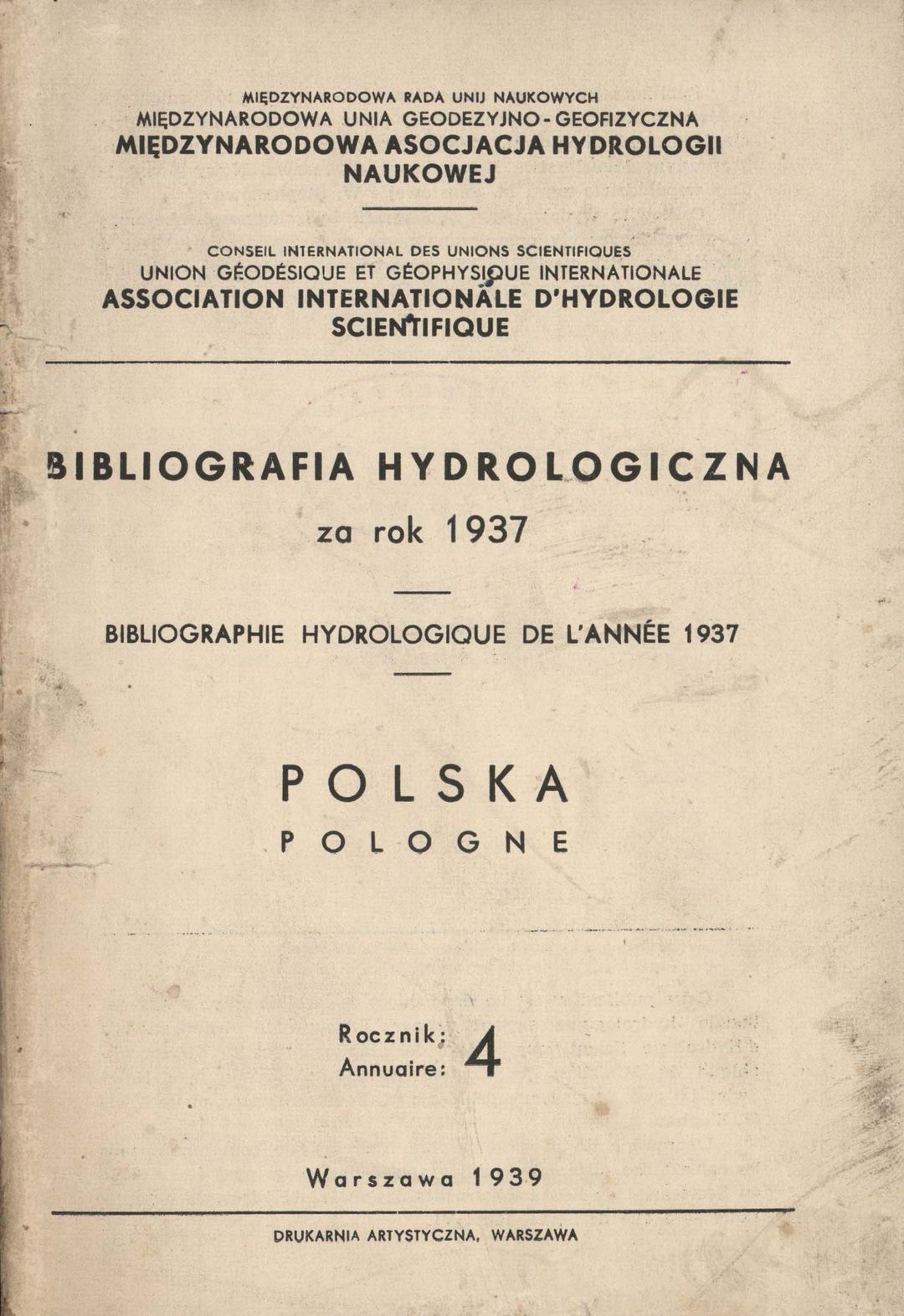 | Inne tytuły: | Polska. Za rok 1937 Bibliographie Hydrologique Bibliografia Hydrologiczna Rocznik 4, |