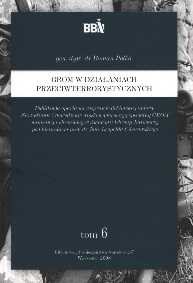 publikacja oparta na rozprawie doktorskiej autora: "Zarządzanie i dowodzenie wojskową formacją specjalną GROM" napisanej i obronionej w Akademii Obrony Narodowej pod kierunkiem prof. dr hab. Leopolda Ciborowskiego