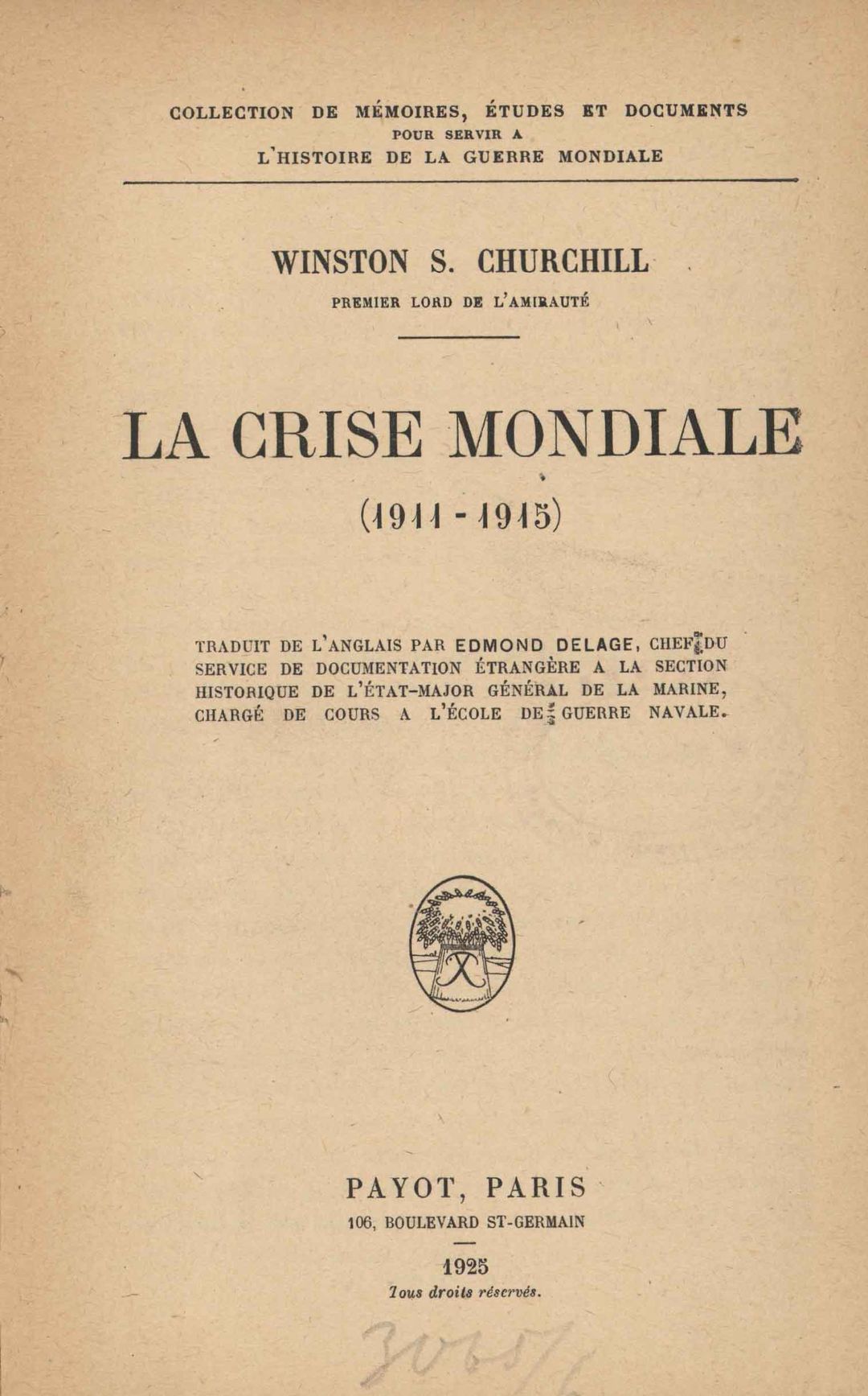 | Wydane w seriach: | Collection de Mémoires, Études et Documents pour Servir à l'Histoire de la Guerre Mondiale |