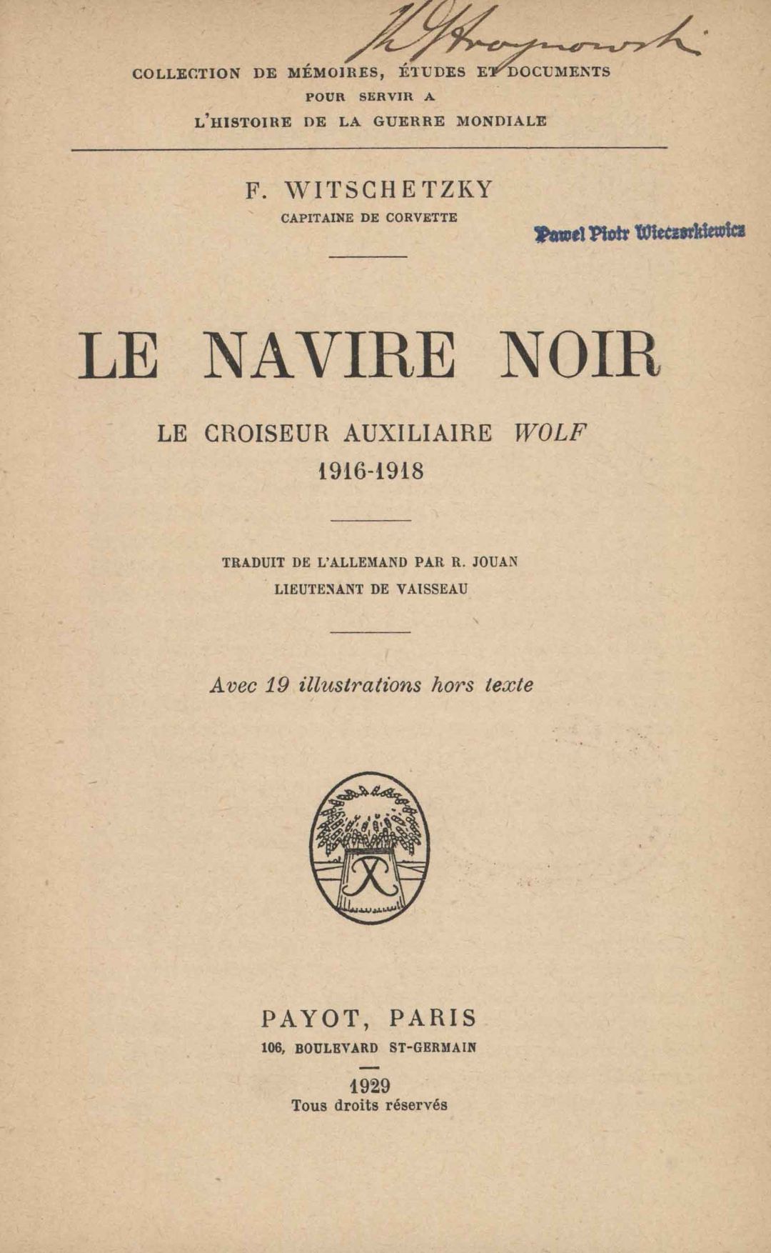 | Wydane w seriach: | Collection de mémoires, études et documents pour servir a l'histoire de la guerre mondialemondiale |