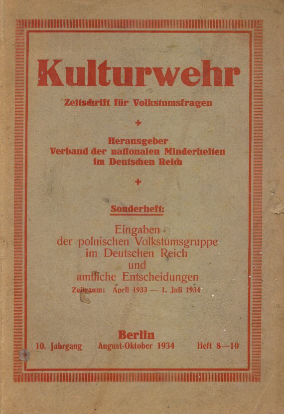 | Inne tytuły: | Eingaben der polnischen Volkstumsgruppe im Deutschen Reich und amtliche Entscheidungen Zeitschrift für Volkstumsfrage Kulturwehr 10 Jahrgang, Heft 8-10 |