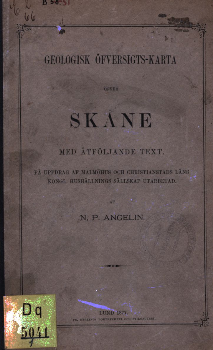 Geologisk öfversigt-karta öfver Skåne med åtföljande text, på uppdrag af Malmöhus och Christianstads läns kongl. hushållnings sällskap utarbetad