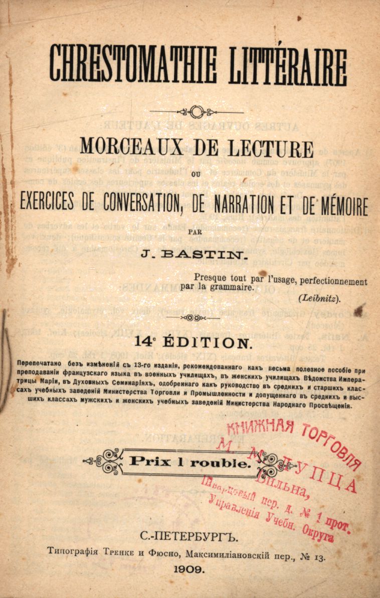 Chrestomathie litteraire: