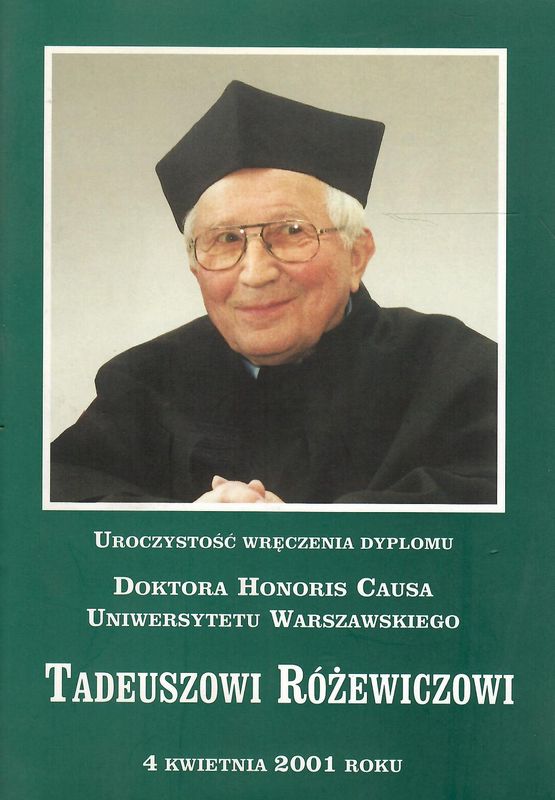 Uroczystość wręczenia dyplomu Doktora Honoris Causa Uniwersytetu Warszawskiego Tadeuszowi Różewiczowi 4 kwietnia 2001 roku