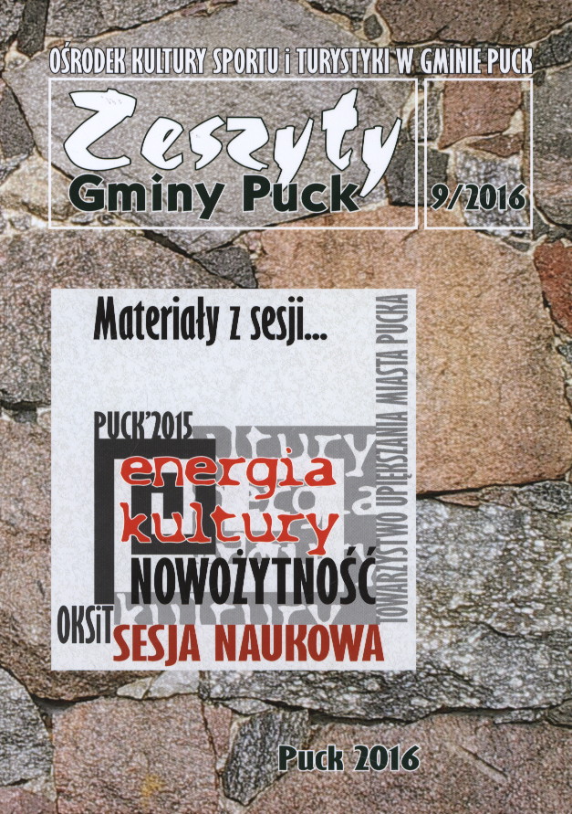 Inne tytuły:Energia kultury. Nowożytność Puck, 16-17 października 2015 sesja poświęcona kulturze i sztuce ziemi puckiej od XVI do XVIII wieku