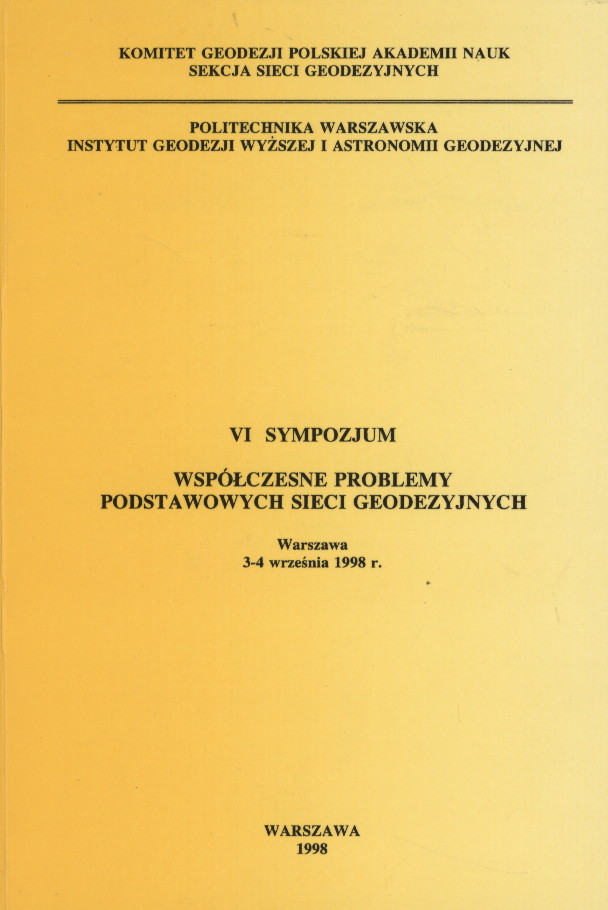 | Instytucje sprawcze: | Polska Akademia Nauk - Sekcja Sieci Geodezyjnych Politechnika Warszawska - Instytut Geodezji Wyższej i Astronomii Geodezyjnej |