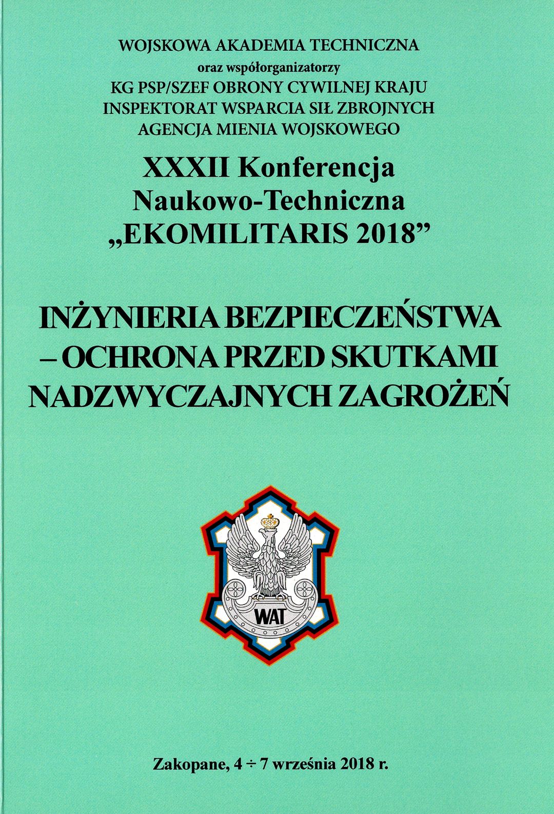 XXXII Konferencja Naukowo-Techniczna "EKOMILITARIS 2018", Zakopane, 4-7 września 2018 r