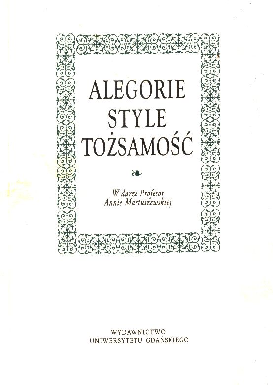 Alegorie, style, tożsamość:
