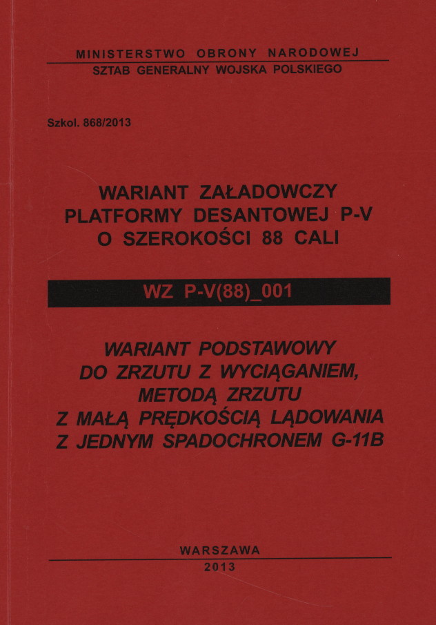 | Inne tytuły: | WZ P-V(88)_001 wariant podstawowy do zrzutu z wyciąganiem, metodą zrzutu z małą prędkością lądowania z jednym spadochronem G-11B |