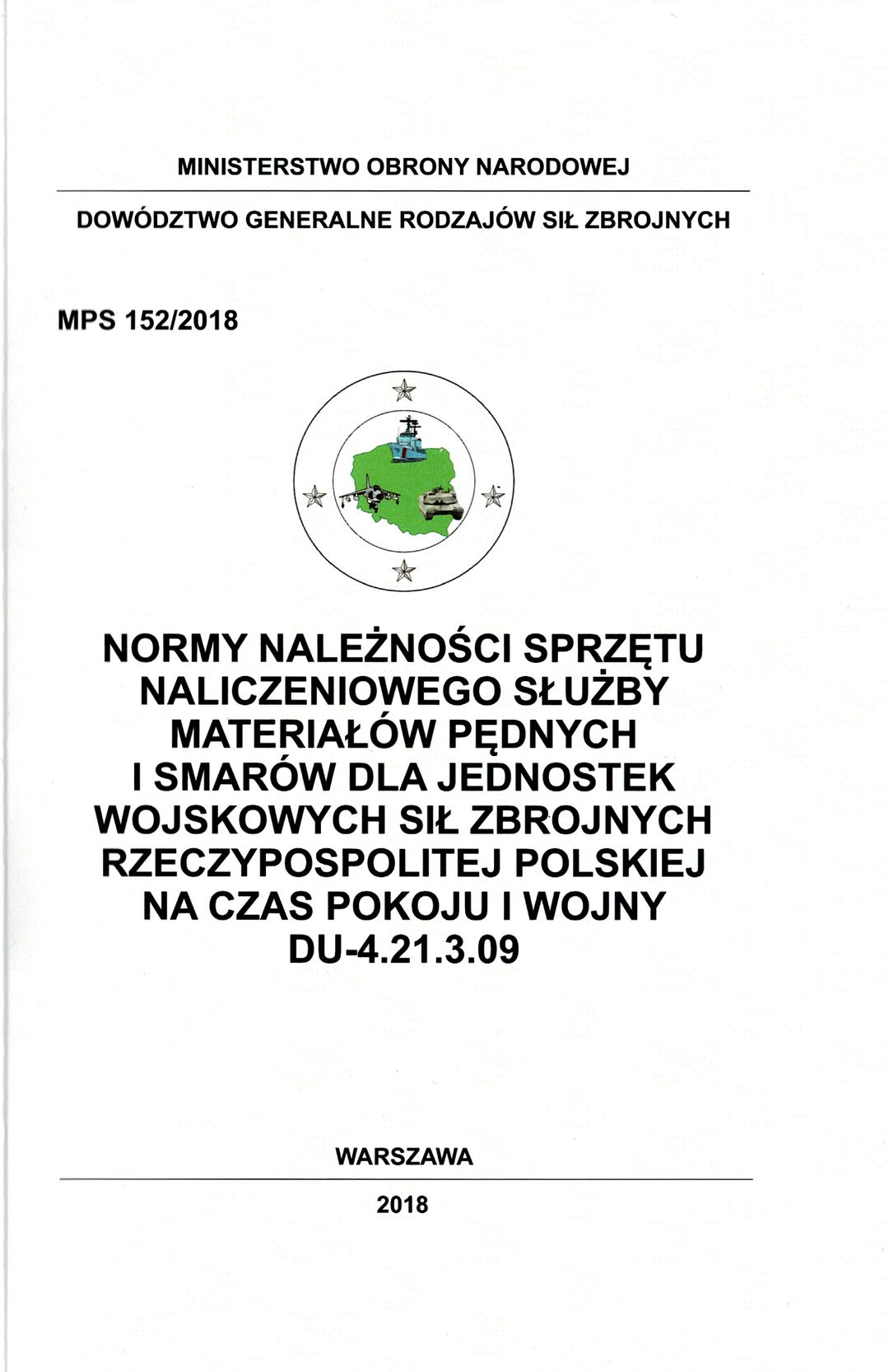 Normy należności sprzętu naliczeniowego służby materiałów pędnych i smarów dla jednostek wojskowych Sił Zbrojnych Rzeczypospolitej Polskiej na czas pokoju i wojny: