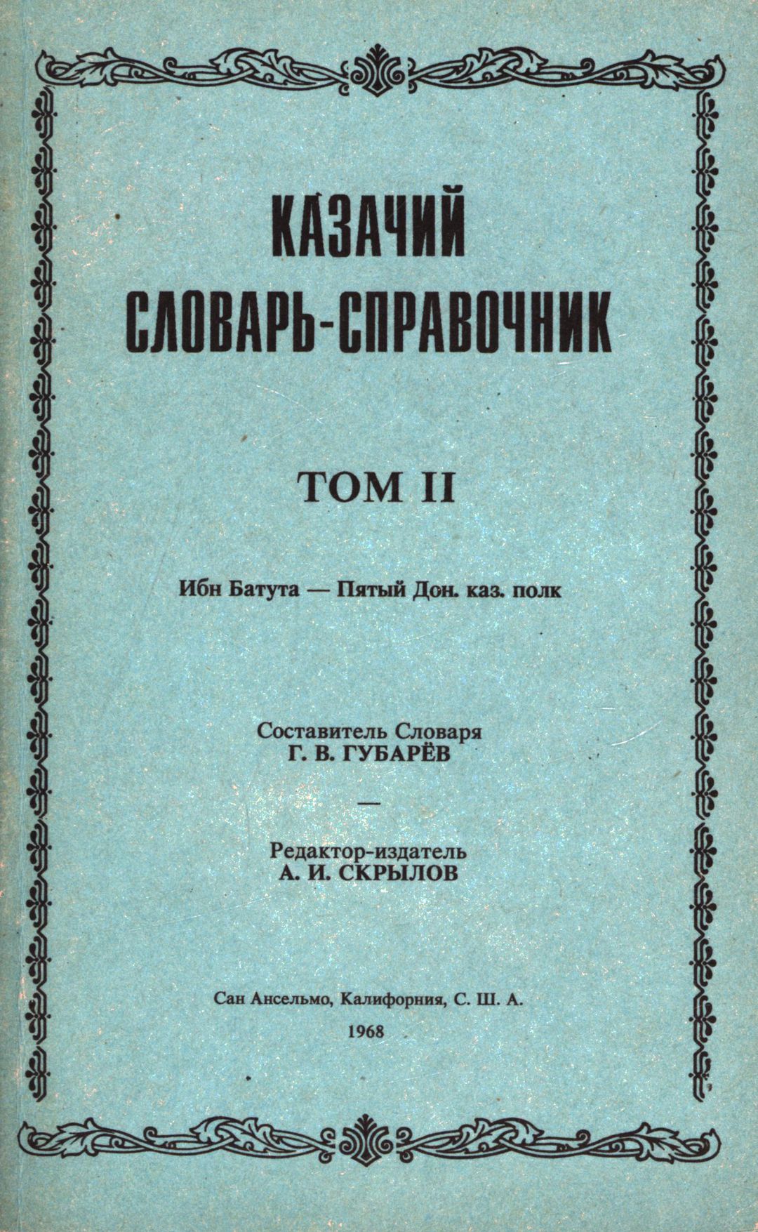 | Inne tytuły: | Kazačij slovar'-spravočnik T. 2 |