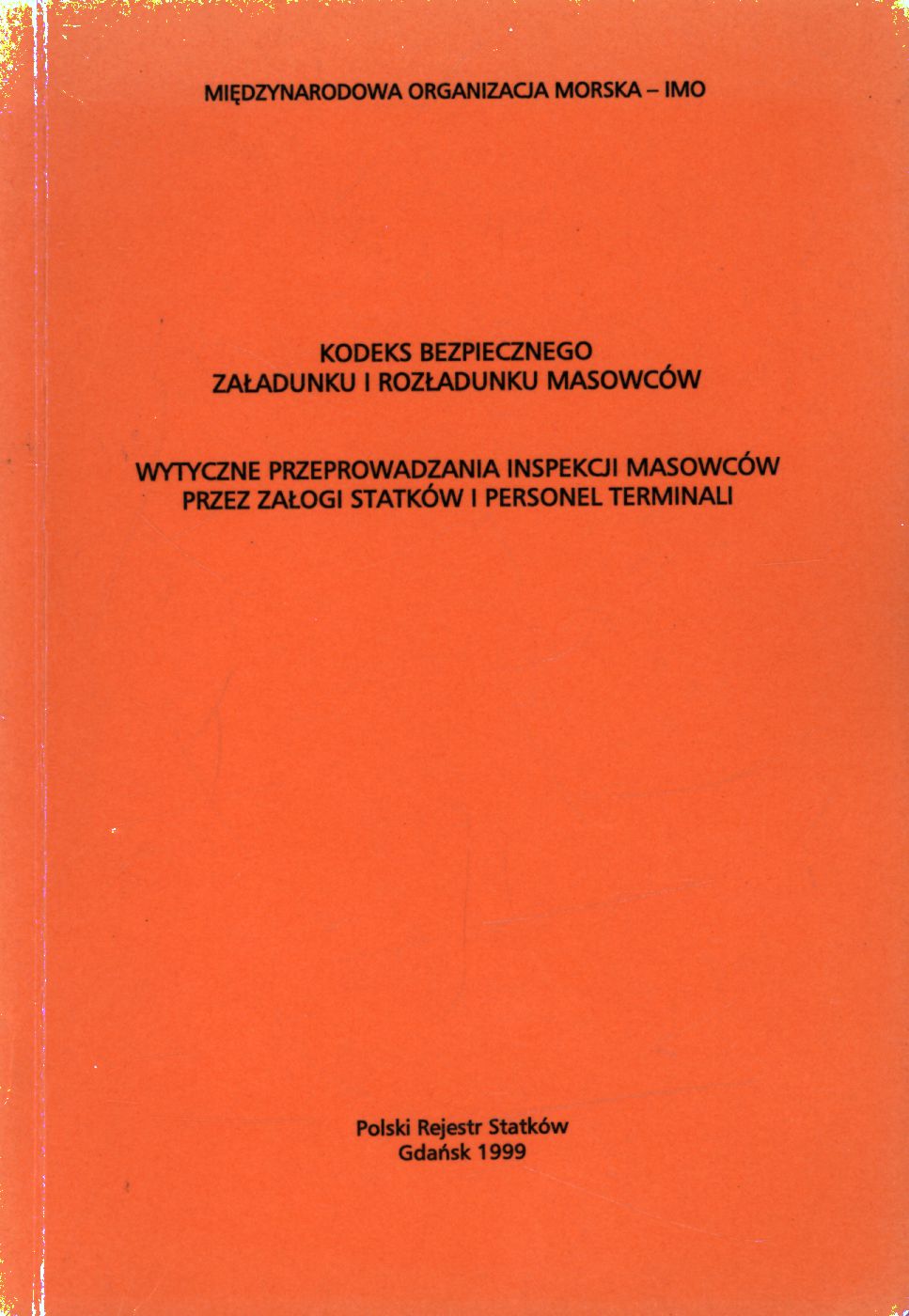 | Inne tytuły: | rezolucja A.862(20) uchwalona 27 listopada 1997. Wytyczne przeprowadzania inspekcji masowców przez załogi statków i personel terminali rezolucja A.866(20) uchwalona 27 listopada 1997. (Teksty w języku polskim i angielskim) |