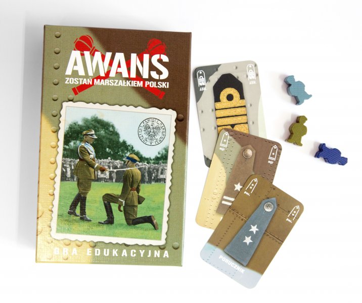 Awans to gra, dzięki której polskie stopnie wojskowe z 1939r. przestana byc dla Ciebie tajemnica. Nosili je na mundurach zarówno żolnierze walczący pod Monte Cassino, marynarze na okręcie ORP Orzeł, lotnicy Dywizjonu 303 i Żolnierze Wyklęci. Masz 17 kart, od szeregowca do marszałka Polski. Twoim zadaniem jest kolekcjonowanie zestawów naramienników. Każdy zebrany układ zapewnia awans na wyższy stopień wojskowy. Wygrywa ten, kto pierwszy awansuje na marszałka Polski!
