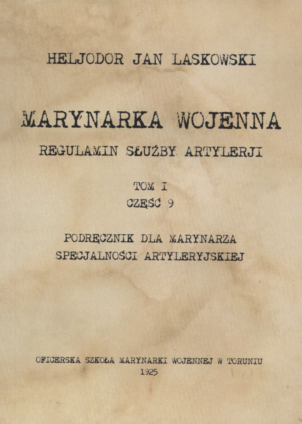 | Inne tytuły: | Podręcznik dla marynarza specjalności artyleryjskiej Marynarka wojenna Tom 1, część 9, |
