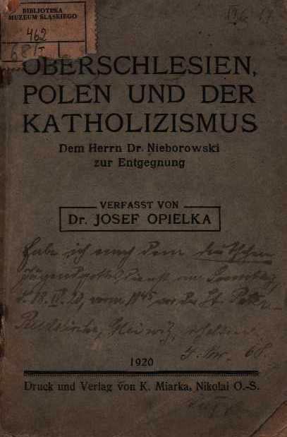 Oberschlesien, Polen und der Katholizismus. Dem Herrn Dr. Nieborowski zur Entgegnung