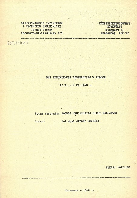 | Inne tytuły: | Dni Komunikacji Węgierskiej w Polsce 27.V.-1.VI.1968 r |