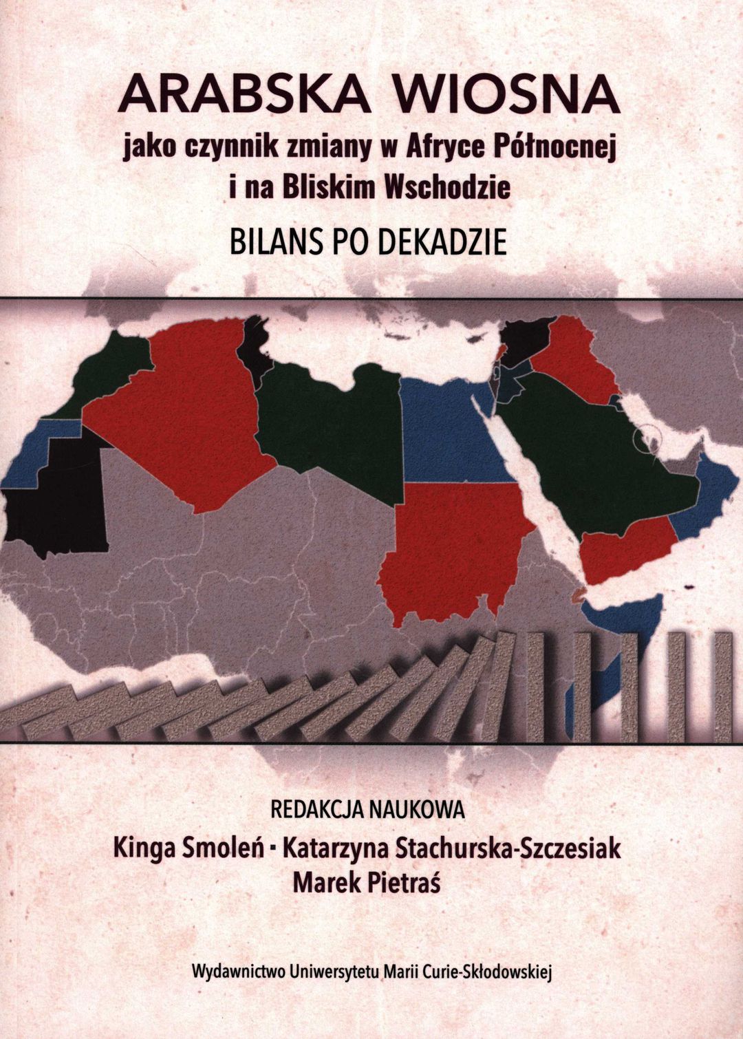 Bliski Wschód przyciągał obserwatorów, analityków, badaczy, próbujących zrozumieć i wyjaśnić dynamikę zachodzących tam przemian – ich genezę, istotę i konsekwencje, nie tylko dla państw i społeczeństw regionu, ale także całego świata. Wyjątkowy charakter tamtych wydarzeń pociągnął za sobą wyjątkowe zainteresowanie osób pragnących zrozumieć je i opisać. Także w Polsce naukowcy zajmujący się Bliskim Wschodem podjęli badania mające dać odpowiedź na szereg pytań, jakie ujawniły się w związku z charakterem i dynamiką społecznych oraz politycznych zmian związanych z przebiegiem i konsekwencjami „arabskiej wiosny”. Okrągła – dziesiąta – rocznica tamtych wydarzeń dała z kolei impuls do sformułowania pierwszych ich ocen z nieco dłuższej perspektywy czasowej [...] Jedną z propozycji dokonania bilansu tamtych wydarzeń jest oceniana publikacja, przygotowana przez grono polskich autorów z kilku uniwersytetów (Uniwersytet Marii Curie-Skłodowskiej w Lublinie, Uniwersytet Jagielloński, Uniwersytet Wrocławski, Uniwersytet Śląski, Uniwersytet Jana Kazimierza w Bydgoszczy, Uniwersytet im. Adama Mickiewicza w Poznaniu) pod naukowym kierunkiem doświadczonych badaczy z UMCS – dr Kingi Smoleń, dr hab. Katarzyny Stachurskiej-Szczesiak i prof. Marka Pietrasia. W skład publikacji wchodzi 12 rozdziałów, w których autorzy podjęli się zadania dokonania analizy poszczególnych aspektów wydarzeń z okresu 2010–2012, jako punkt wyjścia przyjmując najczęściej poszczególne państwa i procesy przemian politycznych w nich zachodzące. Odniesienie do początków ubiegłej dekady nie oznacza oczywiście, że w przygotowanych do publikacji tekstach znajdziemy jedynie treści odnoszące się do wydarzeń „arabskiej wiosny” – stanowią one raczej próbę spojrzenia na nie z dzisiejszej perspektywy. Autorzy po 10 latach od tych, często dramatycznych, wydarzeń próbują spojrzeć na nie z dystansu i z wiedzą o późniejszych losach tych państw. Co ważne, przy dużym wyważeniu ocen skutków zachodzących wówczas procesów, autorzy są z reguły zgodni co do tego, iż pomiędzy oczekiwaniami a rezultatami „arabskiej wiosny” istnieje ogromna przestrzeń dla sceptycyzmu, niepewności, a czasem rozczarowań, wynikających z faktu, że współczesne realia polityczne dowodzą, iż ogromny potencjał społecznego niezadowolenia stojący za masowymi protestami w zdecydowanej większości państw nie przyniósł spodziewanych zmian [...] Przedstawiona do recenzji publikacja jest wartościowym zbiorem artykułów, które na pewno poszerzają naszą wiedzę o Bliskim Wschodzie, pozwalają zrozumieć złożoność i wyjątkowość procesów tam zachodzących, dają dużą porcję faktografii i analiz naukowych służących lepszemu zrozumieniu współczesnego świata. Bliski Wschód jest naprawdę bliski (geograficznie i nie tylko) Europie i ze względów pragmatycznych wiedza o tym regionie świata jest ważna – nie tylko dla badaczy, ale i osób zajmujących się zawodowo kontaktami na szczeblu państwowym i pozarządowym z tą częścią świata [...] Z recenzji wydawniczej dr. hab. Wiesława Lizaka, prof. Uniwersytetu Warszawskiego [opis wydawcy].