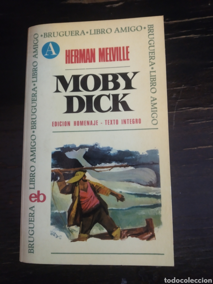 "Moby Dick". Książka w języku hiszpańskim. Powieść amerykańskiego pisarza Hermana Melville'a, uznawana jest za jedno z arcydzieł literatury światowej i klasykę literatury amerykańskiej. Została wydana w roku 1851 w Londynie i Nowym Jorku, ale na początku spotkała się z negatywnym przyjęciem czytelników i krytyki. Dopiero gdy w połowie XX wieku zaczęto na nowo poznawać twórczość Melville'a, powieść "Moby Dick" zdobyła uznanie i wysoką pozycję w kanonie literatury światowej. Opowiada o losach Izmaela, który po kilku rejsach na statkach marynarki handlowej postanawia wyruszyć na wyprawę wielorybniczą. Razem z nowo poznanym przyjacielem, dzikim Queequegiem, zaciąga się na statek Pequod, dowodzony przez ponurego i tajemniczego kapitana Ahaba, który w walce z wielorybem stracił nogę. Wkrótce okazuje się, że dla owładniętego szaleństwem dowódcy jedynym celem tej wyprawy jest zemsta na wielorybie, który go okaleczył, legendarnym białym kaszalocie, Moby Dicku. Szaleńcza pogoń za kaszalotem staje się okazją do pokazania wielorybniczego rzemiosła, a także do zgromadzenia i przedstawienia całej ówczesnej wiedzy na temat wielorybów – opisów poszczególnych gatunków, historii spotkań człowieka z Lewiatanem, ich zwyczajów i anatomii. "Moby Dick" to powieść łącząca w sobie różne style i konwencje, mamy w niej np. powieść przygodową, literaturę naukową, dramat, czy rozważania filozoficzne. W warstwie psychologicznej głównym tematem utworu jest walka między uczuciami a rozsądkiem i między wolą człowieka a przeznaczeniem, toczona głównie w umyśle kapitana Ahaba, ale także pozostałych członków załogi, zdających sobie sprawy z wielkiego niebezpieczeństwa, które im grozi. W książce tej została ukryta bogata symbolika dotycząca Biblii, Boga, człowieka i jego przeznaczenia.