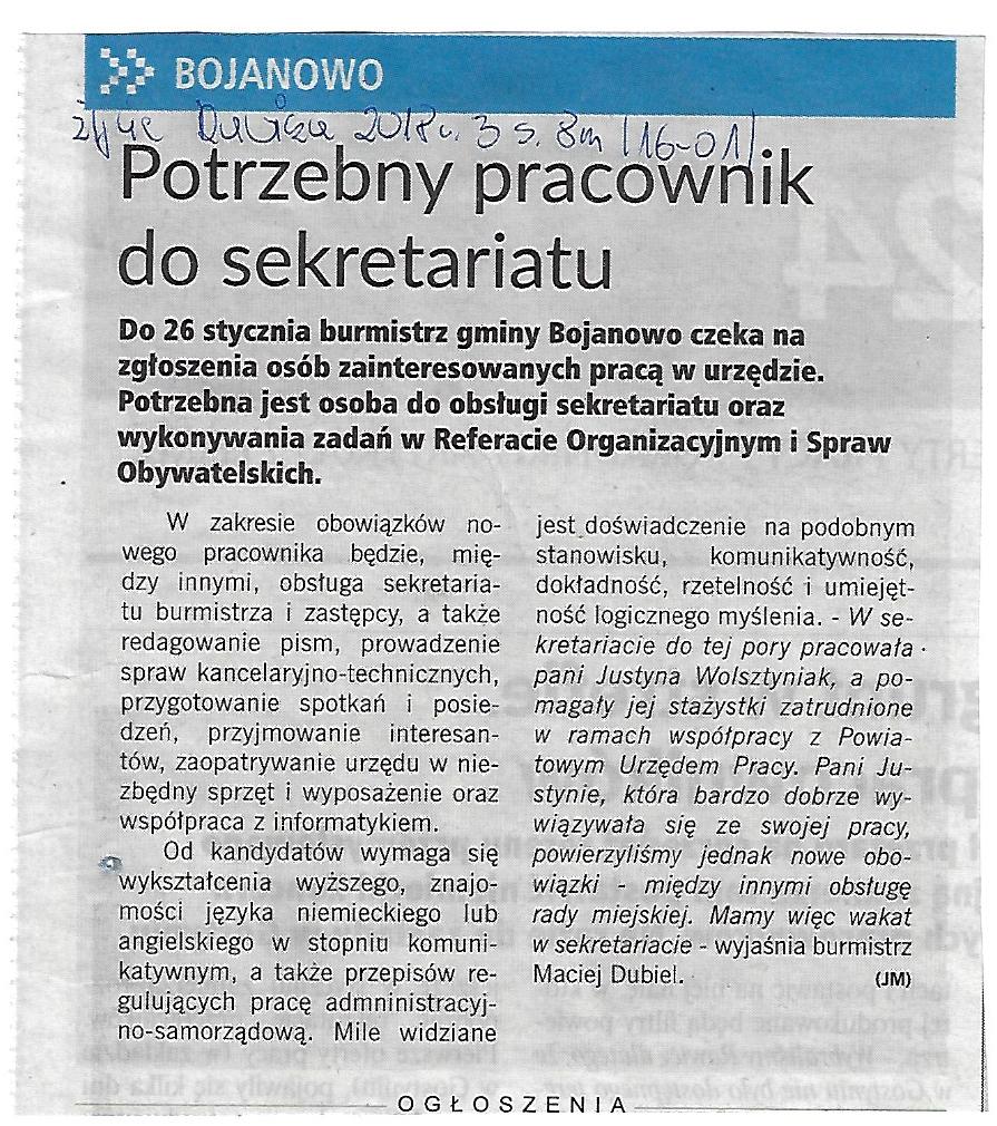 Potrzebny pracownik do sekretariatu